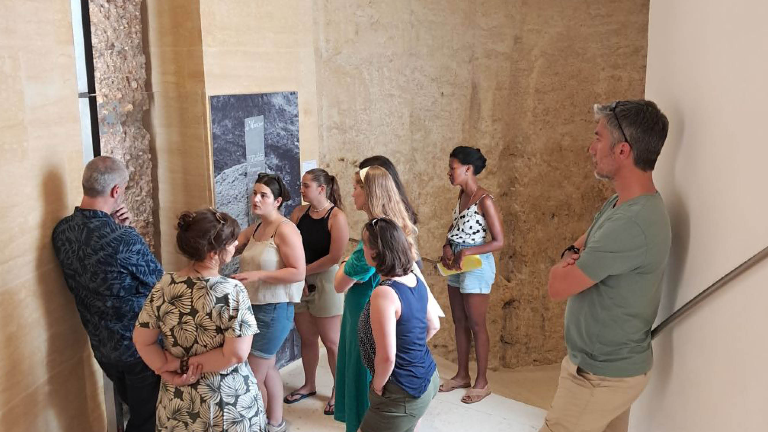 Les échanges se font au fur et à mesure que passe le temps de la résidence d'écriture. Se mêlent des moments de partage et de vulgarisation lors de la visite du Musée de la préhistoire @ Alexandre Reteau/UB