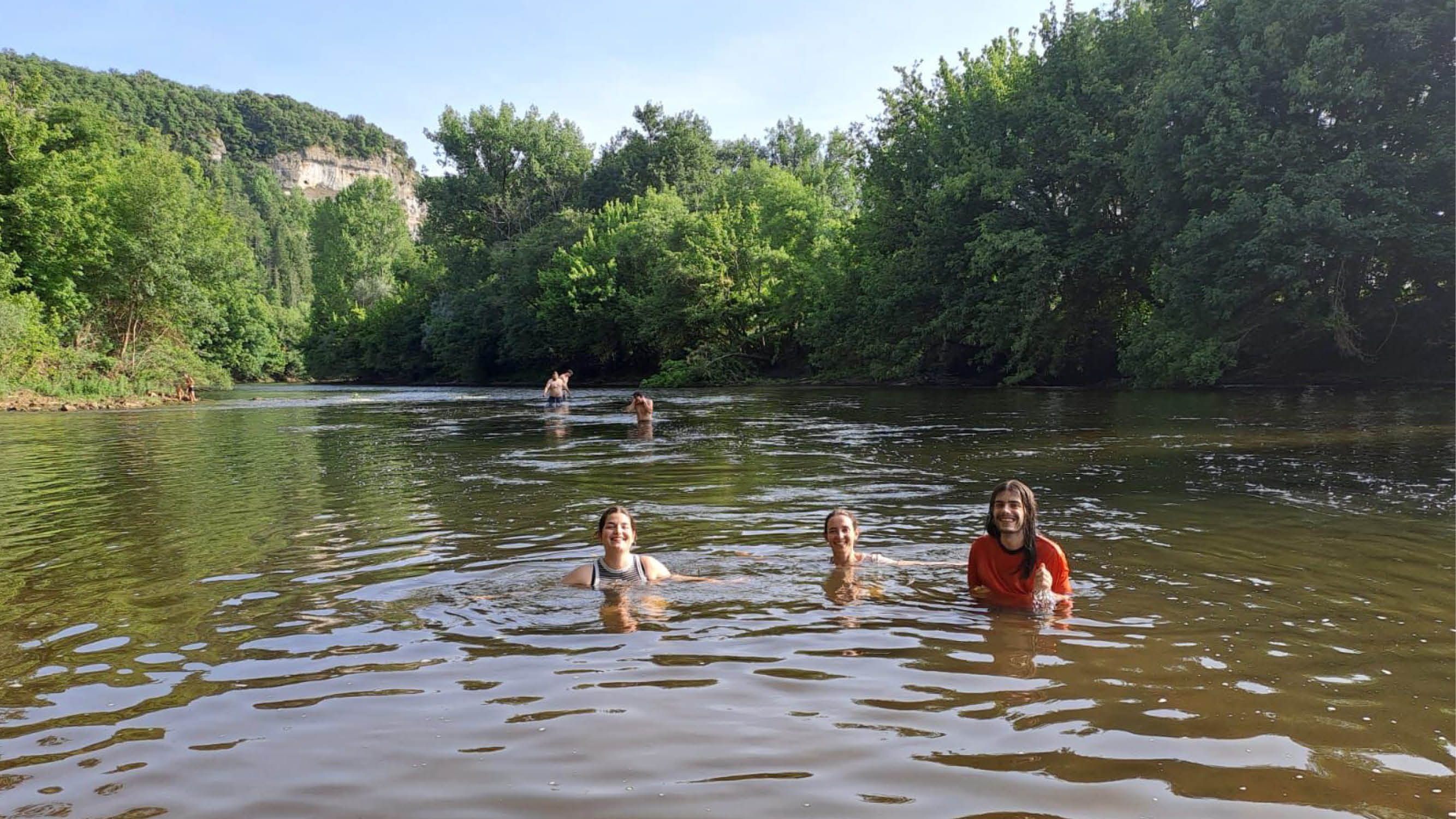 Avec la chaleur d'un mois de juin caniculaire et la surchauffe de cerveaux rudement sollicités, la pause rafraichissante dans la Vézère est plus que bienvenue @ Melina Abdou/UB