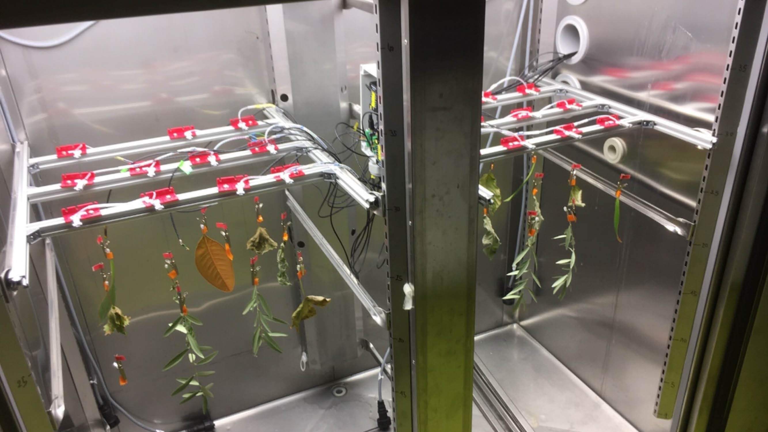 La "droughtbox" permet de suivre l'évolution de la perte en eaux des végétaux dans des conditions de sécheresse controlées © S.Delzon/UMR BioGeCo
