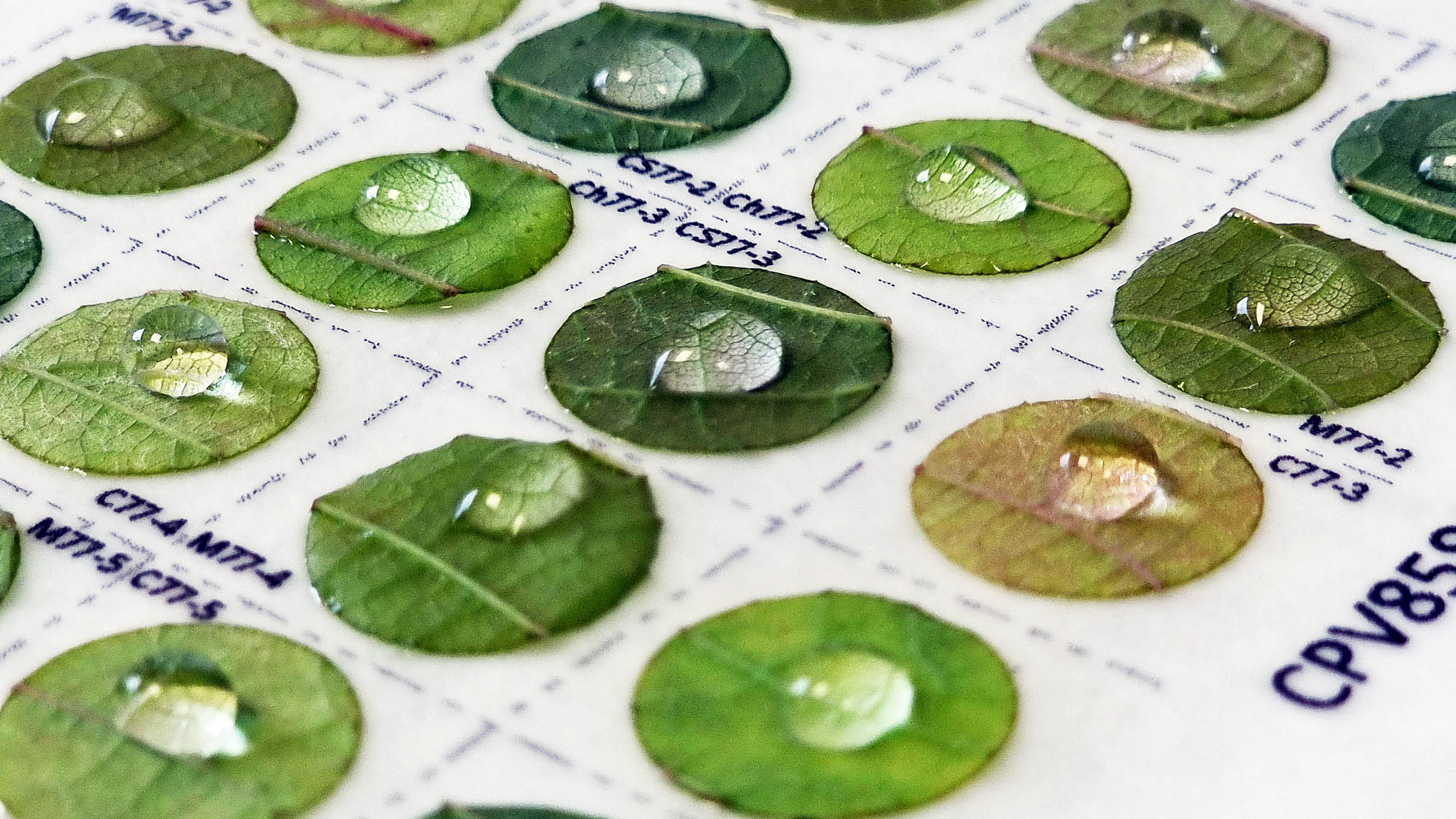 À l’UMR SAVE, des chercheurs ont mené une expérience sur des disques de feuilles de vigne issus de variétés résistantes au mildiou. Ils y ont déposé des gouttes contenant des spores de ce parasite, qui fait partie des oomycètes (proches des algues brunes).