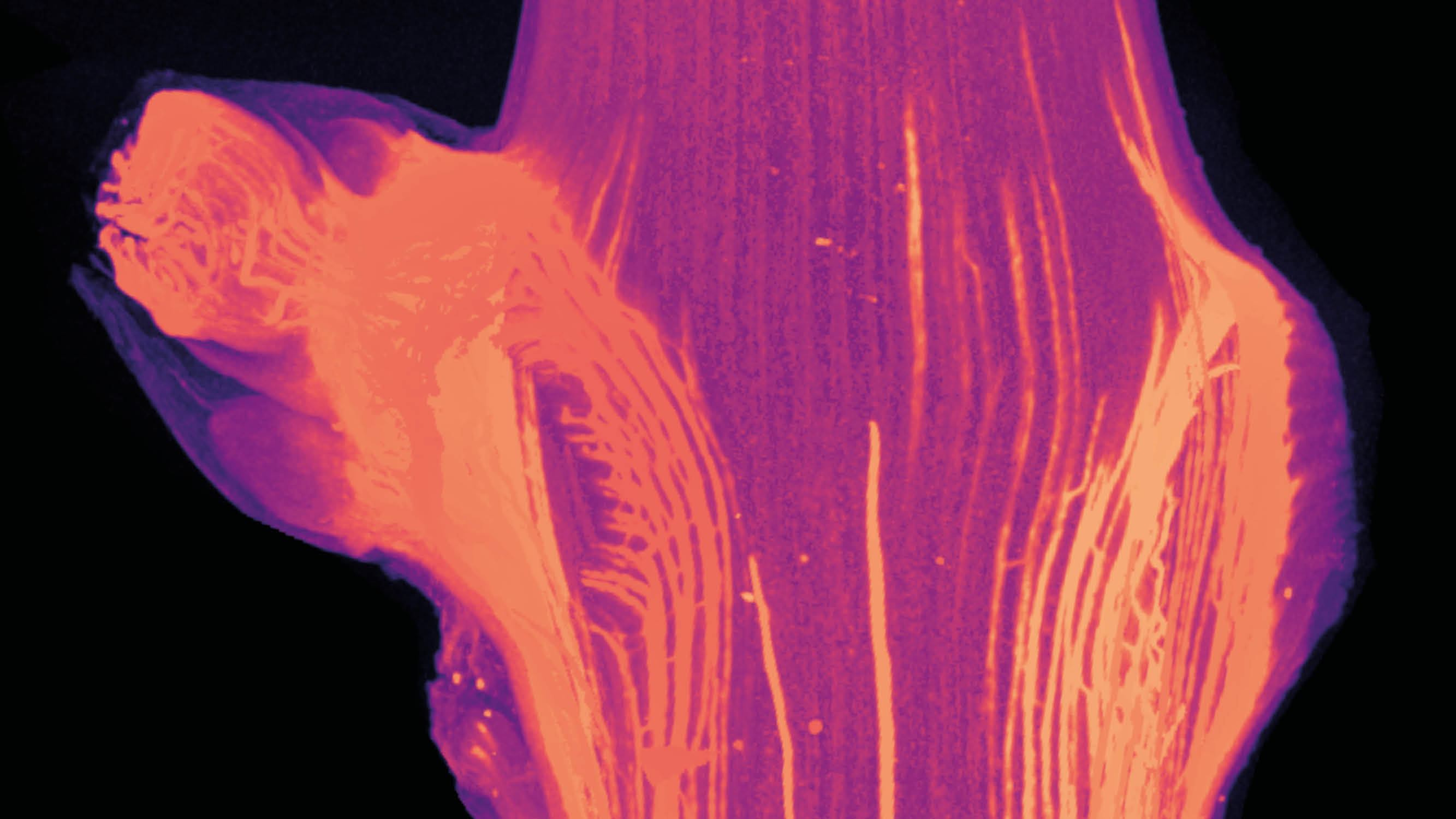L’imagerie tomographique à rayons X leur permet de suivre avec précision le moment où le xylème se met à irriguer les bourgeons qui, jusque-là, étaient en sommeil. Dans le cas présent, les vaisseaux fonctionnels du xylème ont été marqués avec un agent de contraste.
